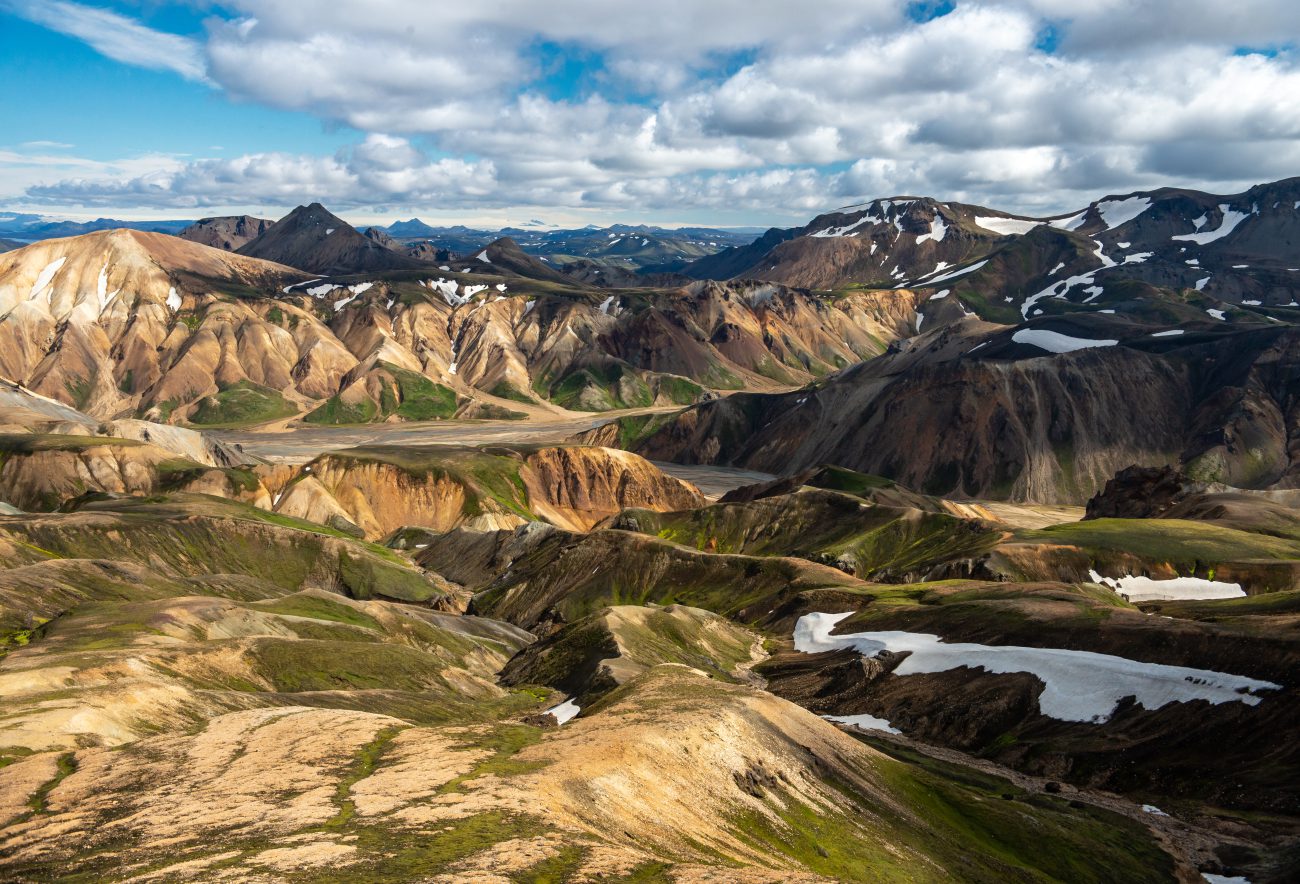 Der Laugavegur zählt zu den schönsten Fernwanderwegen der Welt. Die Route führt von Landmannalaugar nach Þórsmörk durch bunte Rhyolithberge, schwarze Wüsten und grüne Täler.